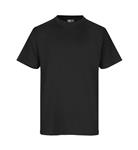 Klassisk sort T-shirt med rund hals, fire-lags halsrib og nakke- og skulderbånd.